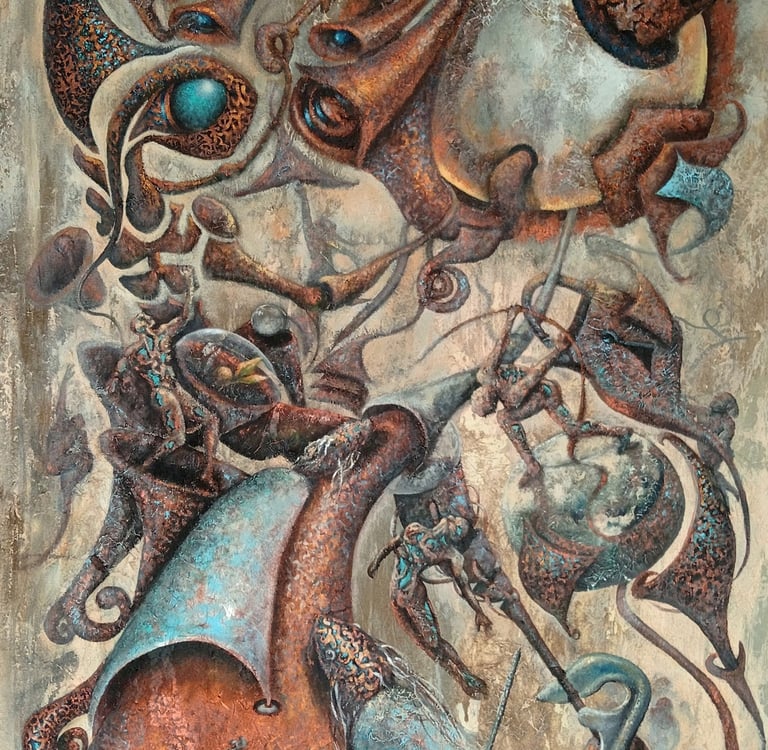 “I am a metamorphic expressionist artist who embodies emotions and phenomena through fluid, transformative forms.”